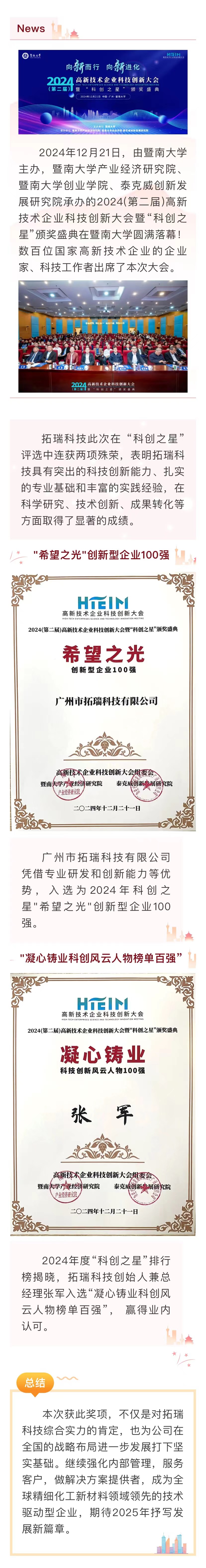 喜報|拓瑞科技榮獲2024年度“科創(chuàng)之星”——創(chuàng)新型企業(yè)100強!